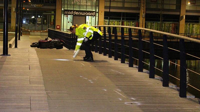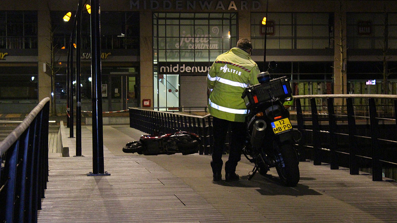 Hij kwam bij het oprijden van de fietsbrug van de Jade naar de Middenwaard ten val en raakte daarbij zwaar gewond. De politie hecht veel waarde aan een onderzoek om duidelijk te krijgen of de motoragent een rol heeft gespeeld in de valpartij.