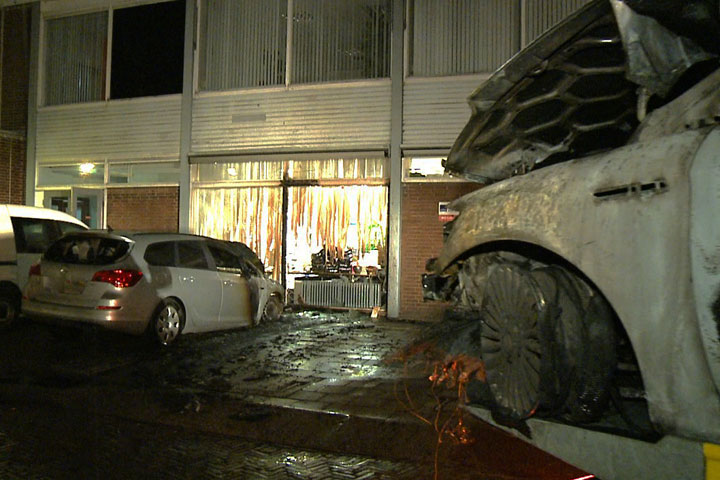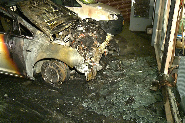 Alkmaar, 17 mei 2011. De brandweer kreeg vanmorgen een melding van een autobrand in de Westerkolkstraat in Alkmaar. Toen de brandweer arriveerde bleken er twee auto's in de brand te staan en was het raam van de Vegro kantoorruimte door de hitte van het vuur gesprongen. Daardoor kreeg het uur vat op de plastic lamellen die achter het raam hingen en op de postbakken, die geen vlam vatten maar wel smolten. De brandweer kon echter voorkomen dat het gebouw serieuze brandschade opliep. Er is inmiddels aangifte van brandstichting gedaan. De foto's zijn gemaakt door Hans Vrenegoor (DNP.NU)