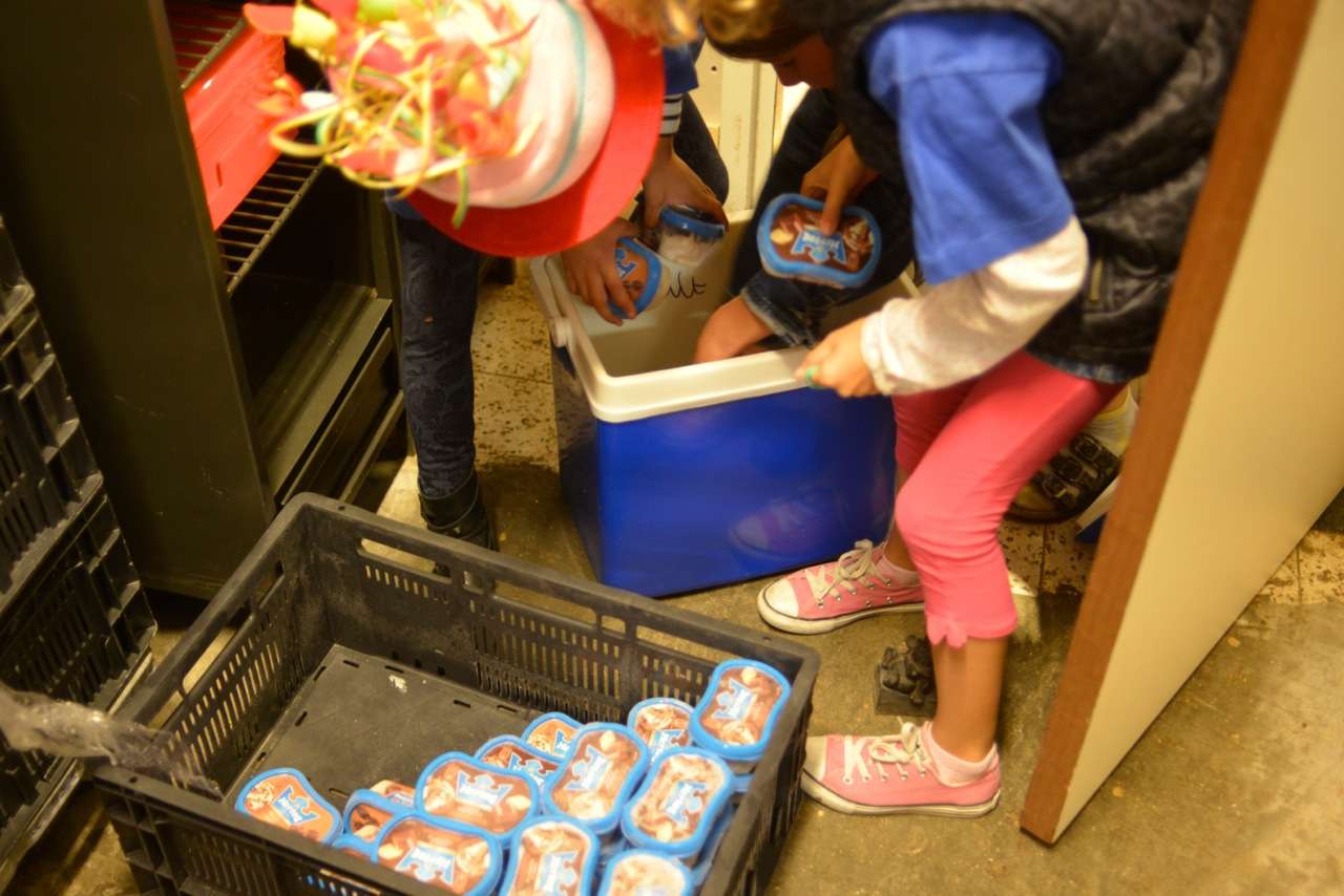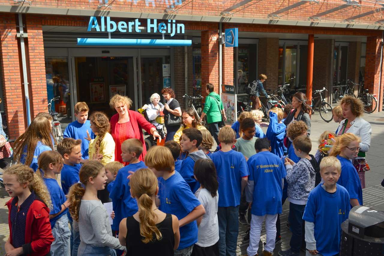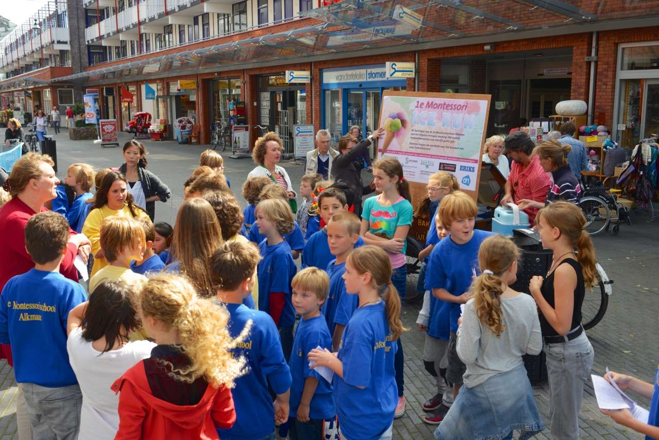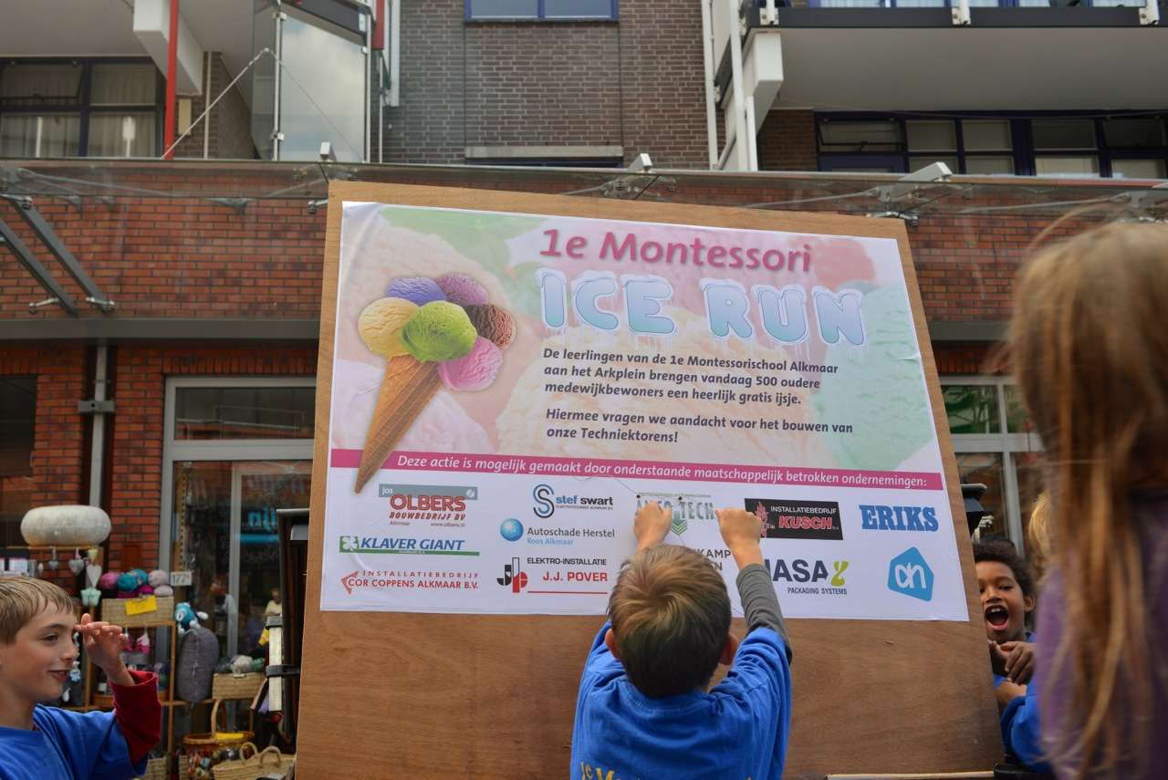 Alkmaar, 30 augustus 2014. Vrijdag hebben leerlingen van basisschool 1e Montessori een bezoekje gebracht aan 500 ouderen in de wijk De Mare. En ze kwamen niet met lege handen, want naast een gezellig praatje brachten de kinderen ook een heerlijk ijsje mee voor de senioren. Na de Rekerhout en bijbehorende aanleunwoningen was verzorgingstehuis Rekerheem aan de beurt. Een groot deel van de bewoners had zich al in de foyer had verzameld en werd onthaald op de muziek van het orkest van muziek atelier Alkmaar. De stemming zat er al vlot in en het uitdelen van de heerlijke chocomomentjes verhoogde de feestvreugde alleen maar.