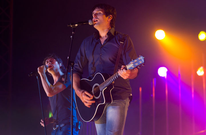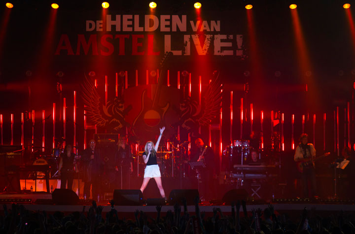 Alkmaar, 20 mei 2011. Zoβn 12.000 bezoekers zijn in een grote tent naast het AFAS stadion in Alkmaar getuige van de pilot met 'De Helden van Amstel LIVE!' Het is een pilot omdat het de eerste keer is dat het terrein bij het stadion wordt ingezet als locatie voor een muziekevenement. Nederlandse artiesten als VanVelzen, Nick & Simon (zie foto hieronder) en Miss Montreal (zie foto hieronder) kruipen speciaal voor 'De Helden' in de huid van hΓΊn grote voorbeelden. Zij laten een nieuwe kant van zichzelf zien door onder meer hits van Queen, The Beatles, The Police en Bon Jovi ten gehore te brengen. De presentatie is in handen van Edwin Evers, die het concert ook muzikaal begeleidt met zijn band. VanVelzen arriveerde vanavond precies op tijd in Alkmaar. Hij werd ingevlogen vanaf Antwerpen waar hij eerder op de avond optrad met Marco Borsato. De foto's zijn gemaakt door Paul Bergen.
