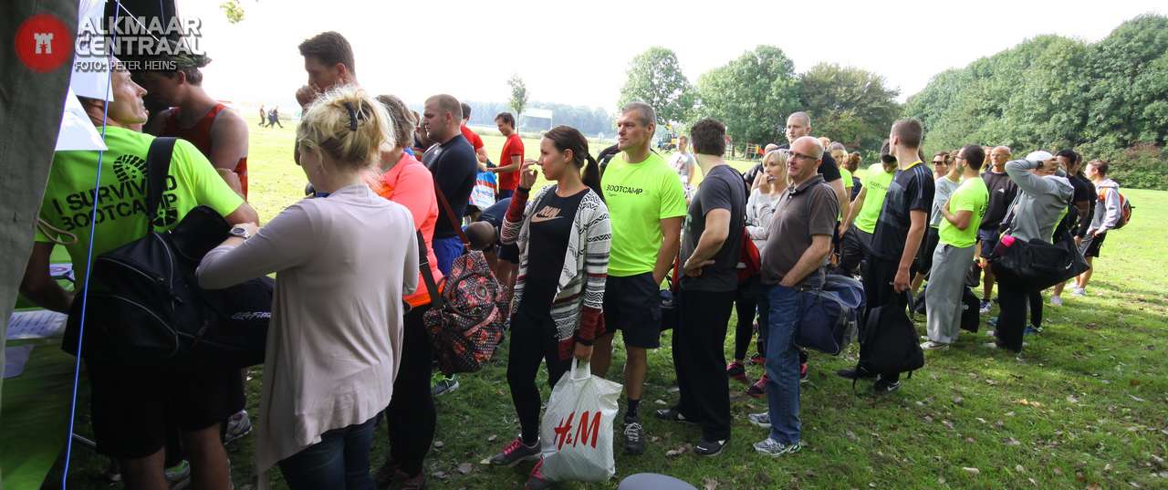Broek op Langedijk, 14 september 2014. Meer dan 500 obstacle run liefhebbers gingen van start bij de eerste Bootcamp Obstacle Run op het Geestmerambacht terrein. Touwnetten, houten muren, containers, moerassen, mountainbike-paden, zandstranden en zelfs rioolbuizen zijn een paar van de obstakels die de deelnemers voor hun kiezen kregen. Hardlopen met\flinke hindernissen dus. De organisatie had drie verschillende parcoursen uitgezet met lengtes van 6, 12 en 18 kilometer. Naast de honderden individuele deelnemers, waren er ook de nodige sport- en bedrijfsteams aangemeld. Het is voor het eerst dat in de Kop van Noord-Holland een Obstacle Run is georganiseerd. De voorbereidingen zijn dan ook al maanden bezig, vertelt Sanne ter Veen, die het evenement organiseerde met Joost Molenaar.