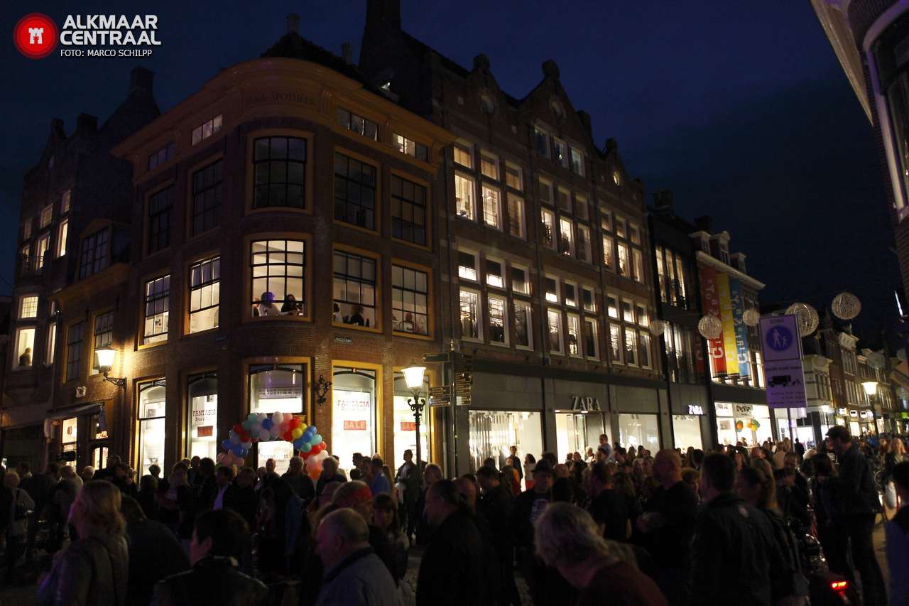 Alkmaar, 28 september. Zaterdagavond was het weer zo ver: Gratis parkeren in de Schelphoekgarage, overal muziek, DJ's in de winkels en straten, en winkelen to 23.00 uur. Afgaand op de hoeveelheid mensen die de weg naar de Laat en (vooral) de Langestraat wisten te vinden was Shoppingnight 2014 een succes. Zoals ieder jaar is de start van de Shoppingnight ook het moment waarop de sfeerverlichting in de binnen stad voor het eerst onstoken wordt en die eer viel wethouders Viktor Kloos en Elly Konijn te beurt. Via een grote rode knop werd de verlichting ingeschakeld. Alkmaar Centraal fotograaf Marco Schilpp wilde niets missen van deze jaarlijkse 'shopping-frenzie' en maakte dit fotoverslag.