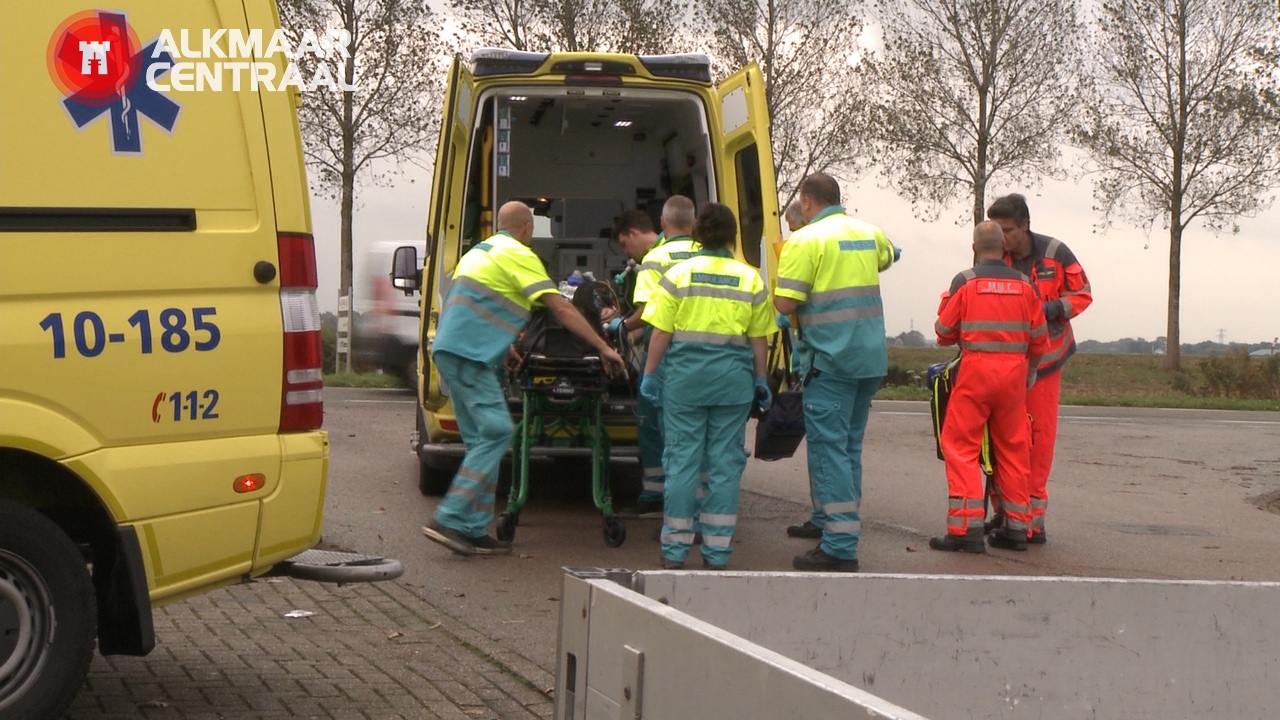 Alkmaar, 09 oktober 2014. Woensdag rond 16:30 uur reed een motorrijder over de Kanaaldijk van Akersloot richting Alkmaar. Voor hem reed een bestelbus die bij de afslag Molenlei de Boekelermeer op reed. De motorrijder kon hier niet tijdig op reageren en reed schuin van achteren tegen het linksaf slaande busje op. Daarna schoot hij via een bord door en eindigde hard tegen een iets verderop geparkeerde auto.