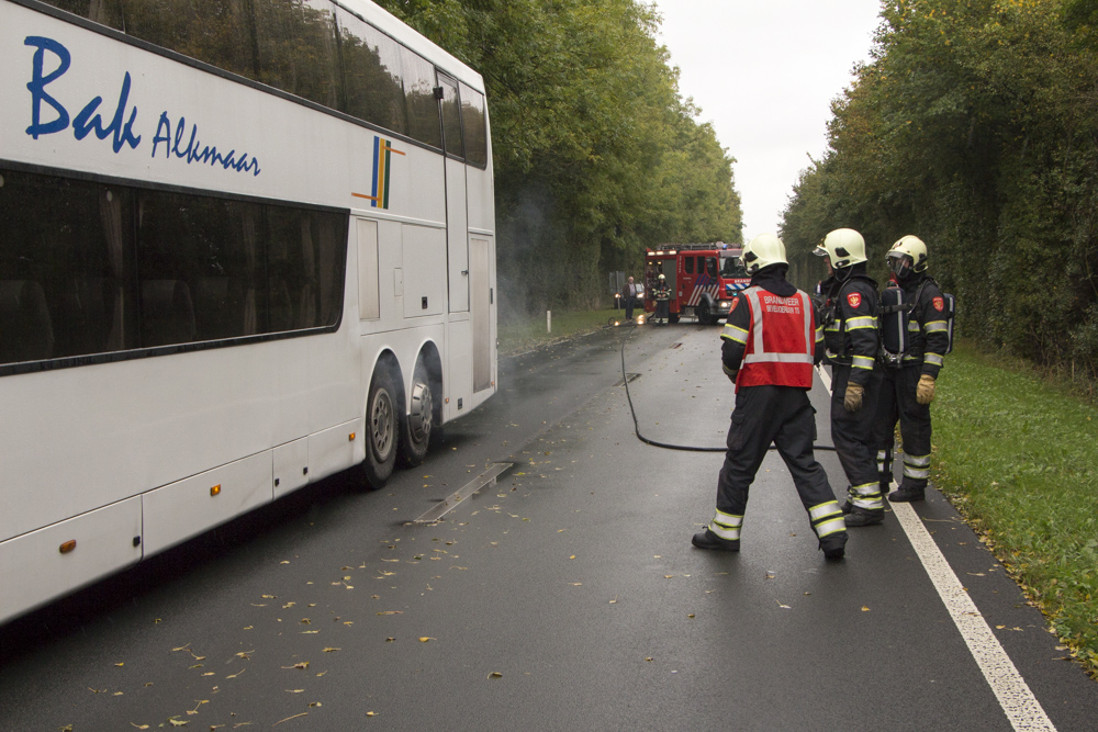Alkmaar, 20 oktober 2014. De Schagerweg (N245) is zondagmiddag enige tijd afgesloten geweest tussen afslag Broek op Langedijk en Daalmeer vanwege een defecte en rokende dubbeldekker bus. De chauffeur had in de gaten gekregen dat er wat mis was en wilde de bus op de eerstvolgende afslag stilzetten. Dat was de afslag Laan van Tata-De Helling. Een medewerker van de 112 meldkamer, die toevallig voorbij de bus reed, besloot anders en ging voor de bus rijden om de chauffeur te laten stoppen.