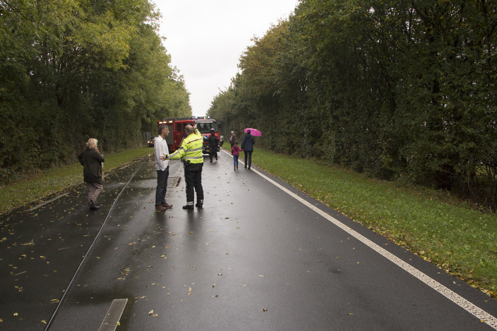 De inzittenden van de gestrande auto's die achter de bus reden kwamen na ruim 20 minuten nieuwsgierig kijken en protesteren. Zij werden in eerste instantie gemaand terug te gaan naar hun auto. Toen bleek dat de bus niet zomaar van zijn plek zou komen, heeft de politie toestemming gegeven om te keren en tegen de richting naar de politieafzetting te rijden. (Foto's: DNP.NU)
