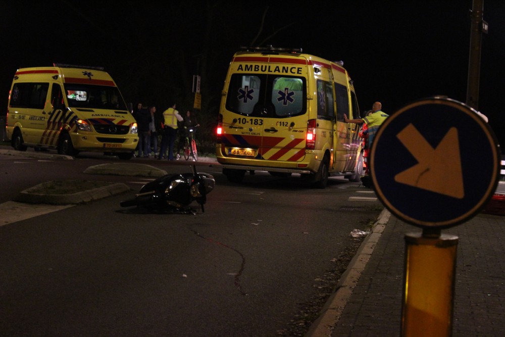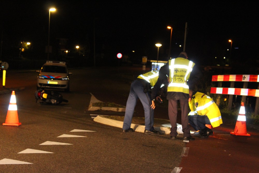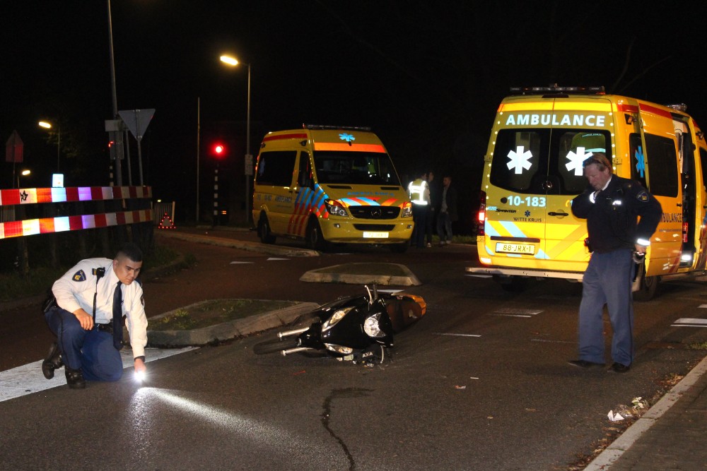 Alkmaar, 27 oktober 2014. Een 46-jarige bromfietsster uit Alkmaar raakte in de nacht van zaterdag op zondag rond 01.00 uur ernstig gewond bij een eenzijdig ongeval op de Zeswielen. De vrouw was in de bocht van de Koedijkersstraat door onbekende oorzaak ten val gekomen en verloor hierbij het bewustzijn. Omstanders verleenden eerste hulp, tot de hulpdiensten het overnamen. Het slachtoffer werd naar het ziekenhuis vervoerd met voor alsnog onbekende, maar duidelijk ernstige verwondingen. (Foto's DNP / Lorenzo Derksen)