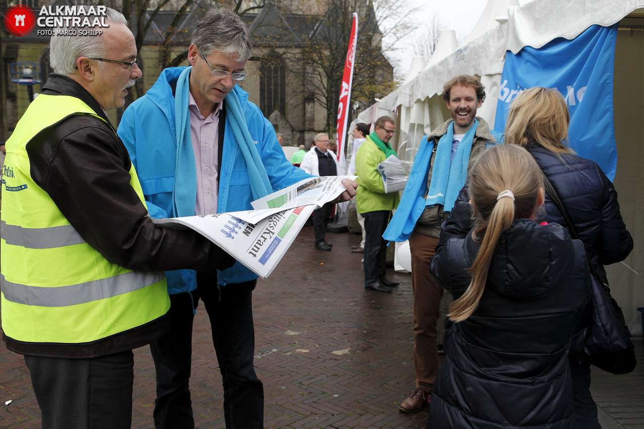 Alkmaar, 16 november 2014. De Alkmaarse binnenstad bruiste zaterdag van de activiteiten. Natuurlijk kwam dat door de aankomst van de Goedheiligman, maar ook de Tattooconventie trok de nodige mensen. En wie zichzelf nog steeds als zwevende kiezer laat noteren kon op het Canadaplein terecht waar alle politieke partijen vertegenwoordigd waren bij de tweede editie van Raad op Straat. En dat de verkiezingen nu echt om de hoek staan bleek wel uit het aantal landelijke prominenten dat naar Alkmaar gekomen was om tegenwicht te bieden aan de puur Alkmaarse toewijding van de lokale partijen. PvdA fractievoorzitter Diederik Samson en Eerste Kamerlid Guusje ter Horst gaven acte de présence, maar ook D66 politicus Pia Dijkstra, VVD-staatssecretaris Fred Teeven en Christenunie leider Arie Slob waren aanwezig. Voor Alkmaar Centraal was fotograaf Marco Schilpp present, hij maakte deze fotoreportage.