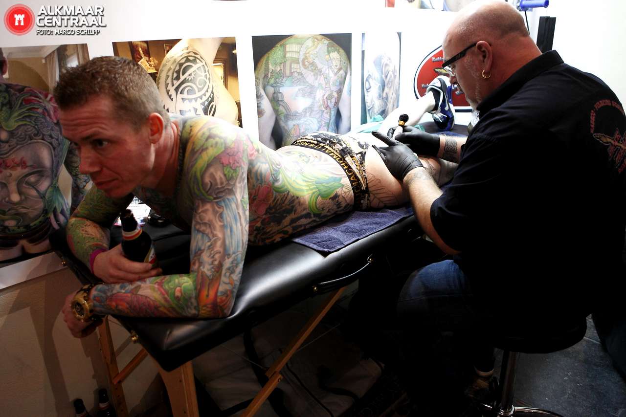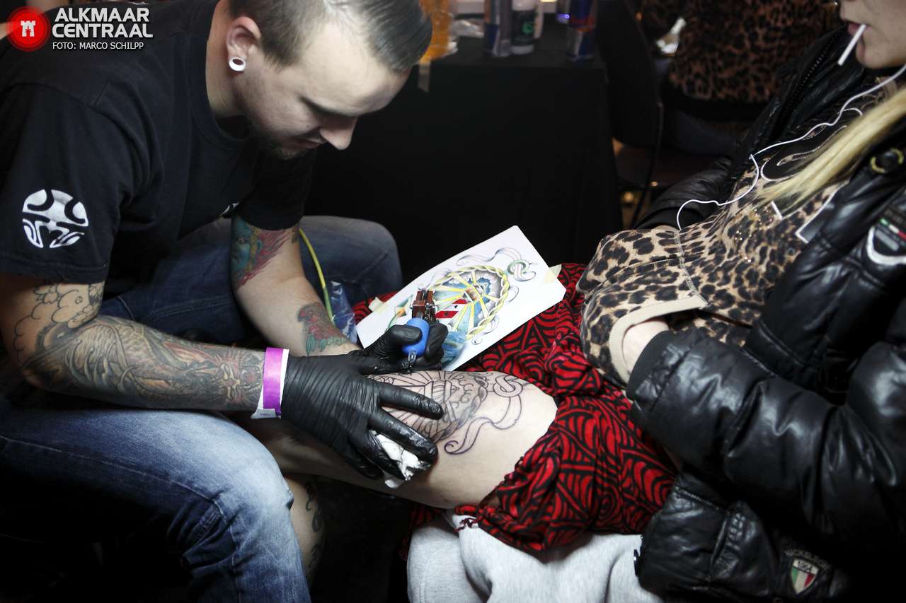 Alkmaar, 16 november 2014. Het is al weer de achtste keer dat de Grote Kerk het unieke decor vormt voor de Internationale Tattoo Conventie. Dat de conventie een belangrijke plek inneemt op de kalender van menig tattoo-artiest blijkt wel uit het feit dat de beschikbare plekken ook dit jaar weer volgeboekt zijn, er zijn meer dan 100 tattoo-artiesten aanwezig. Vandaag (zondag) wordt door een jury Mr. of Mrs. Tattoo 2015 aangewezen. Dat gebeurt Β aan de hand van onder andere de kwaliteit van tattoos op rugstukken. Ook Dean Saunders Jr. en degenslikker Johnny Strange zijn aanwezig in de Grote Kerk. Door het bijzonder decor en het kleurrijke publiek is de Tattoo Conventie ook voor fotografen een aantrekkelijk evenement. Alkmaar Centraal fotograaf Marco Schilpp liet zich dan ook niet tegenhouden en maakte deze fotoreportage.