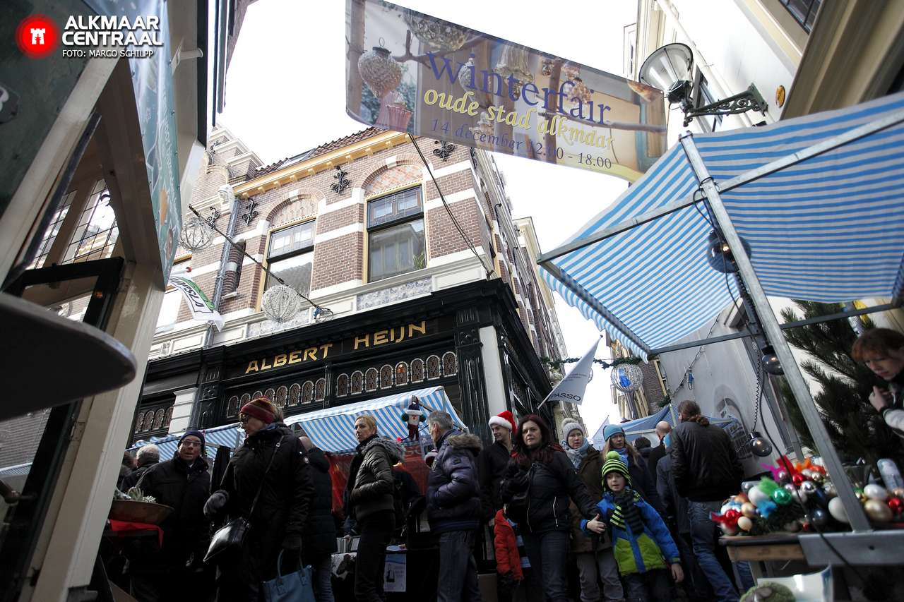 Alkmaar, 14 december 2014. D' Oude Stad mocht zondag rekenen op een flink bezoekersaantal. Reden? De Winterfair. De Mient, het Fnidsen, deAppelsteeg, Hekelstraat, Platte Stenenbrug en de Visbanken werden onder gedompeld in een heerlijke wintersfeer. Alle 80 winkeliers hadden de deuren geopend hebben en waren met een met een kraam vertegenwoordigd. Maar ook zelfstandige standhouders met mooie, creatieve, lekkere en bijzondere producten waren aanwezig. D' Oude Stad werd bondien opgeluisterd door Dickens-gezelschappen, live muziek, verrassende attracties en mooie decoraties. Het is nog geen Dรผsseldorf, maar het begin is er. Alkmaar Centraal fotograaf Marco Schilpp waagde zich tussen het enthousiaste publiek en maakte deze fotoreportage.