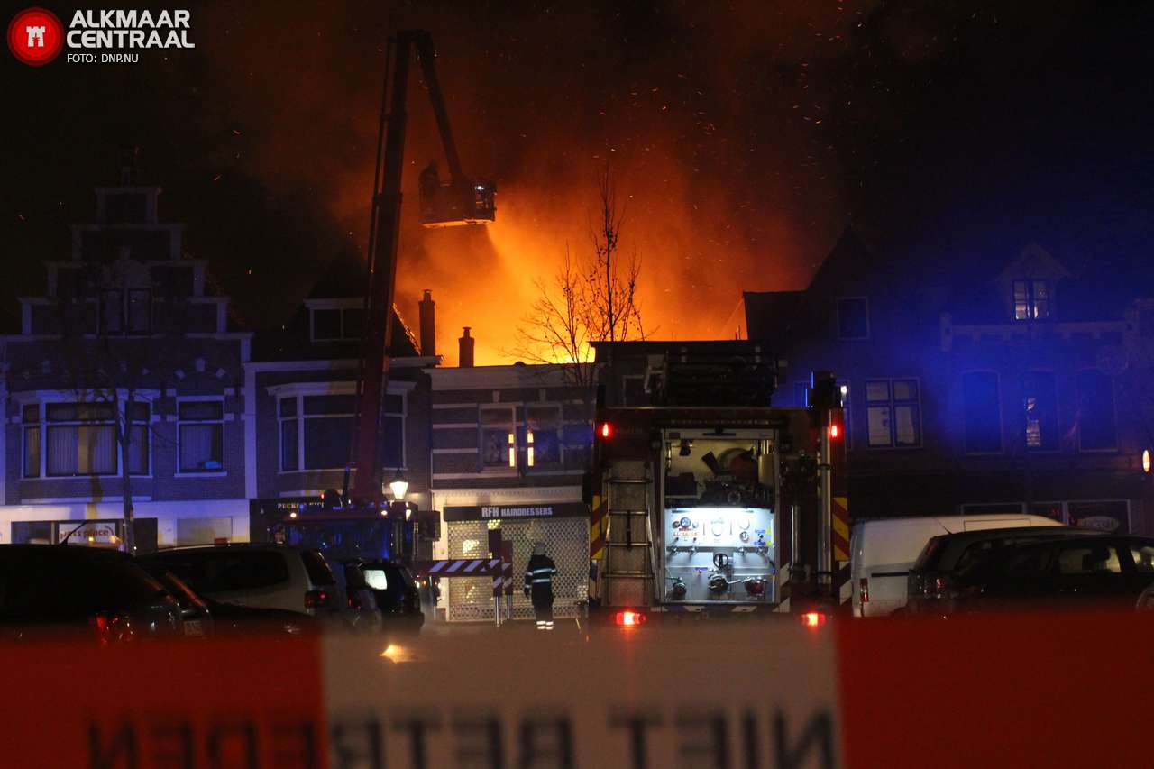 Meerdere korpsen uit de regio ondersteunden de Alkmaarse brandweer, er werden vier hoogwerkers ingezet waarvan er één uit Heemskerk kwam. Het vuur liet zich lastig 'grijpen' door tussen de muren en panden te kruipen. Het zorgde ervoor dat de brandweer er zijn handen vol aan had. De Langestraat en Gedempte Nieuwesloot werden al snel afgesloten, later kwam daar ook de Kanaalkade bij vanwege watertransport. Rond kwart over zes laaide de brand weer op en werden nog meer korpsen uit de regio opgeroepen om materieel en mensen naar Alkmaar te sturen (beelden: DNP.NU / Lorenzo Derksen)