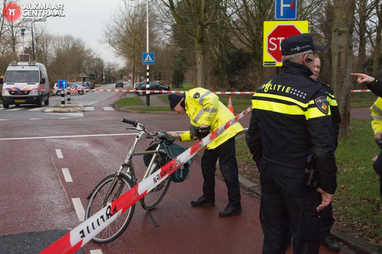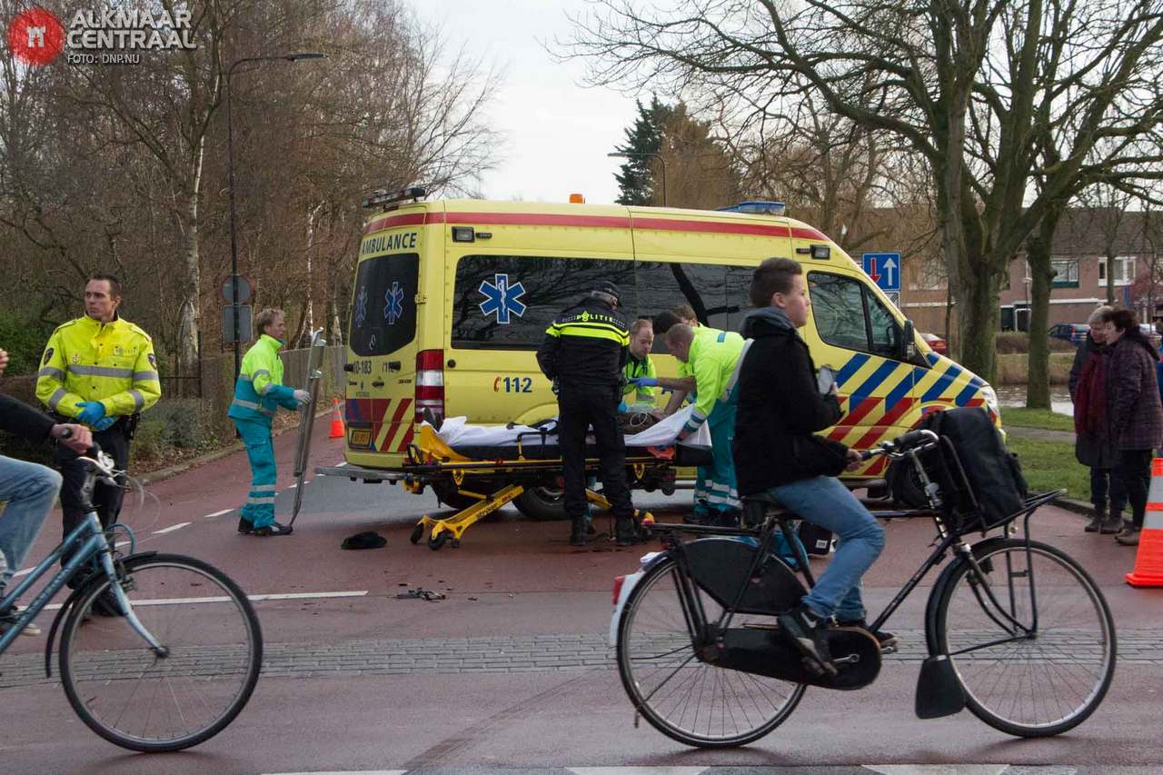 Heerhugowaard, 08 januari 2015. Woensdagmiddag is een fietser gewond geraakt toen hij in Heerhugowaard werd aangereden op de Middenweg. De al wat oudere man reed richting Alkmaar toen hij op de kruising met de Diamant werd geraakt door een busje. De bestuurder van het busje leek te stoppen, maar ging er toch vandoor. Omstanders en getuigen hielpen het slachtoffer tot een ambulance arriveerde en het ambulancepersoneel de zorg overnam. De man is met onbekend letsel naar het ziekenhuis vervoerd. De bestuurder van het busje heeft zich later bij de politie gemeld en is aangehouden. (foto's: DNP.NU)