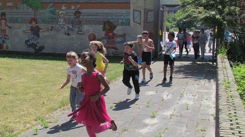 Kinderen van groep 5 t/m 8 zochten vooraf sponsors. Vrijdag kregen ze eerst een swingende warming up, om daarna een half uur lang rondjes te lopen. Op het schoolplein kregen ze per rondje een stempel op hun deelnemerskaart en werden ze door schoolgenootjes aangemoedigd. Wat de loop opgeleverd heeft, is nog niet bekendgemaakt.