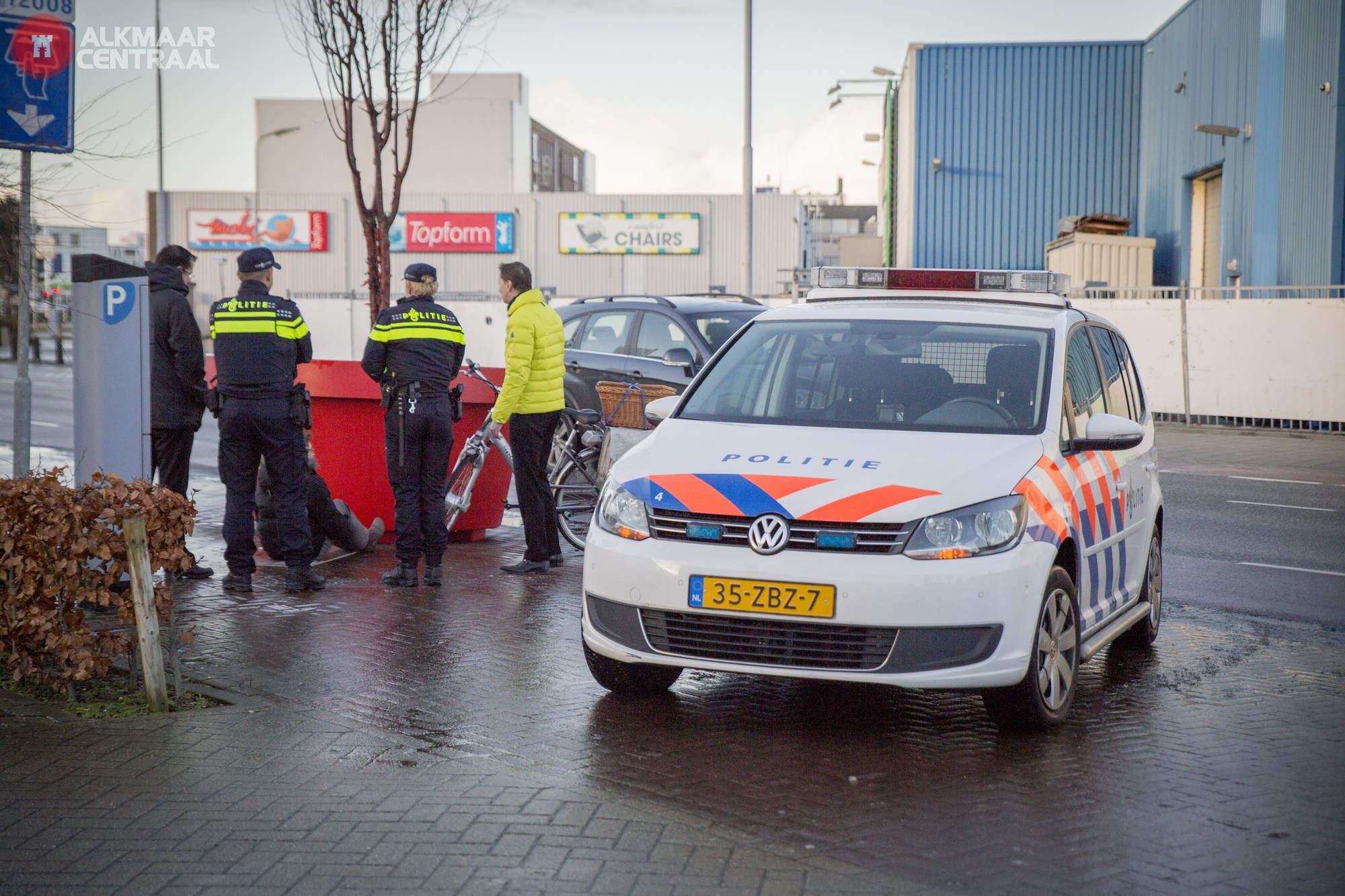 Alkmaar, 24 januari 2015. Even na het middaguur lijkt het grootste leed geleden en neemt de gladheid op veel plaatsen af. Het is een drukke middag geweest voor de hulpdiensten. Niet alleen veel blikschade, maar ook persoonlijk leed. Op de Runmolen kwam een vrouw die voor de zekerheid maar van de fiets was afgestapt toch ten val. Ze brak daarbij haar been. Ook op de Koedijkerstraat kwam iemand naar ten val en moest naar het ziekenhuis. Op de letterlijk spiegelgladde Paardenmarkt was het slechts een kwestie van tijd voor er iemand naar ten val kwam. Dat gebeurde dus ook: een vrouw gleed onderuit en raakte daarbij gewond. In eerste instantie reageerde een Rapid Responder, maar voor het vervoer naar het ziekenhuis moest toch een ambulance te plaatse komen.