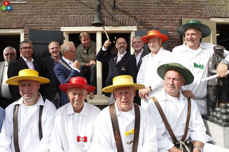 Het dagelijks bestuur van de International Children's Games (ICG) heeft vrijdagochtend de Kaasmarktbel geluid. ICG-president Thorsten Rasch deed dat stipt om 10.00 uur, geflankeerd door secretaris-generaal Richard Smith, penningmeester Wolfgang Glenz, technisch comitélid Igor Topole en algemeen bestuurslid Chang Fen-Fen. Natuurlijk waren ook de mascottes aanwezig.