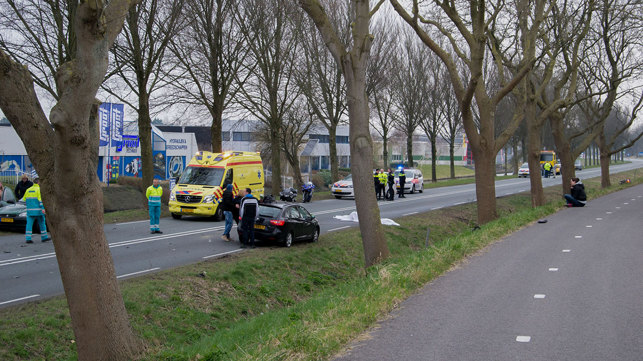 Heerhugowaard, 14 maart 2015. Zaterdagmiddag rond vijf uur is een motorrijder omgekomen bij een ongeval op de N242. De man was met zijn zoon, een vriend en andere familieleden op pad geweest en het hele gezelschap was weer onderweg naar huis. Een aantal motorrijders van de groep haalden ter hoogte van de Zandhorst de auto in waar de familie van de man in zat, de vader reed daar achter. Toen hij ook inhaalde ging het mis. Hij klapte na het afronden van de inhaalmanoeuvre toch op een tegenligger, schoof een flink eind over de grond en bleef uiteindelijk in de berm liggen, vlak voor de auto met daarin de familie. Hij was op slag dood. Tussen de plek van de daadwerkelijk aanrijding en de plek waar de motor in de berm tot stilstand is gekomen zit een paar honderd meter. De politie doet onderzoek naar de oorzaak van het ongeval en heeft daarvoor de N242 afgesloten. (beelden: DNP.NU)