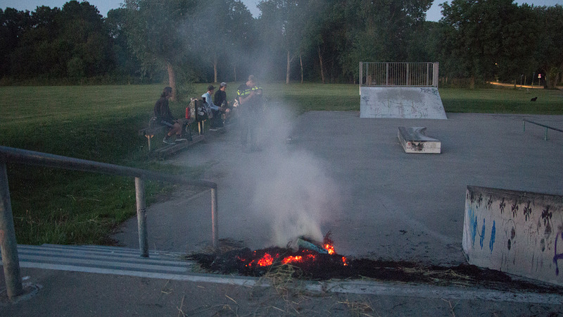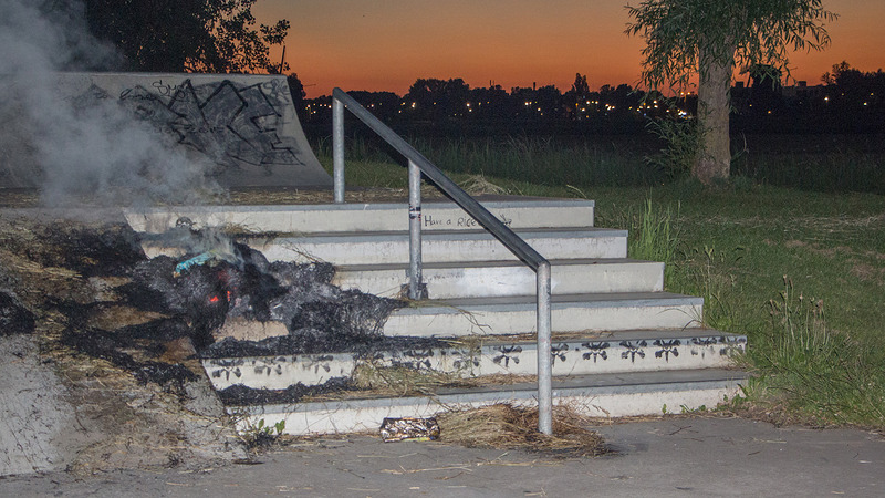 Dinsdagavond heeft een groep jongeren aan de Munnikenweg in Oudorp hooi op de skatebaan gegooid en dit aangestoken. Ze zijn daarna weggegaan en lieten het hooi branden. Een andere groep iets oudere jongeren was hier getuige van, maar ze deden niets om de andere jongeren tegen te houden of het vuur te blussen. Toen de politie arriveerde konden de oudere jongeren geen verklaring geven voor dit lakse gedrag.