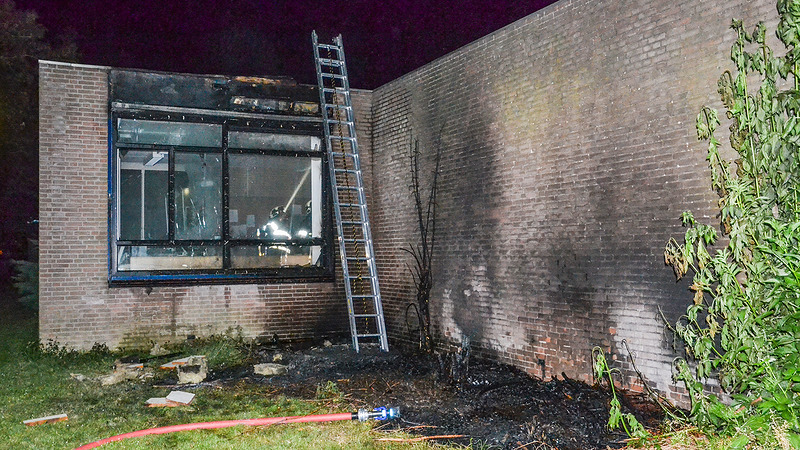 De hitte van het vuur heeft er voor gezorgd dat de ruiten gesprongen zijn en de vlammen hebben de dakrand beschadigd. Ook stond een klaslokaal vol rook.