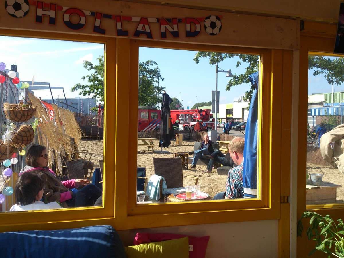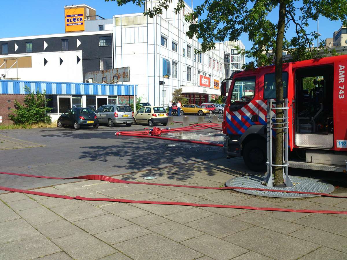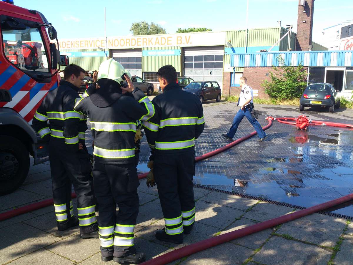 Alkmaar, 6 juni 2012. Woensdagmiddag werd er een spektakelstuk opgevoerd voor de opvarenden van een aan de Noorderkade afgemeerd cruiseschip en voor de bezoekers van het Alkmaarse Stadsstrand. Lekker onderuitgezakt en aan een cappucino nippend konden ze bekijken hoe de brandweer zich met gillende sirenes van de brandweerkazerne aan de Helderseweg over de Tesselsebrug naar de net aan de overkant van het water liggende Noorderkade spoede vanwege een brandmelding in de oude bandencentrale Noorderkade. De brand bleek uiteindelijk erg mee te vallen, maar trok vanwege de plek toch behoorlijk wat bekijks. Een aantal automobilisten die hun voertuig lekker dicht tegen het gebouw hadden geparkeerd om zo te besparen op parkeerkosten keken wat benauwd, maar uiteindelijk is er geen schade aan de auto's ontstaan. Na wat voorspoedig verlopen bluswerk werden de slangen weer opgerold en keerde de rust terug op de Noorderkade.