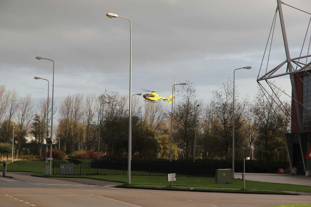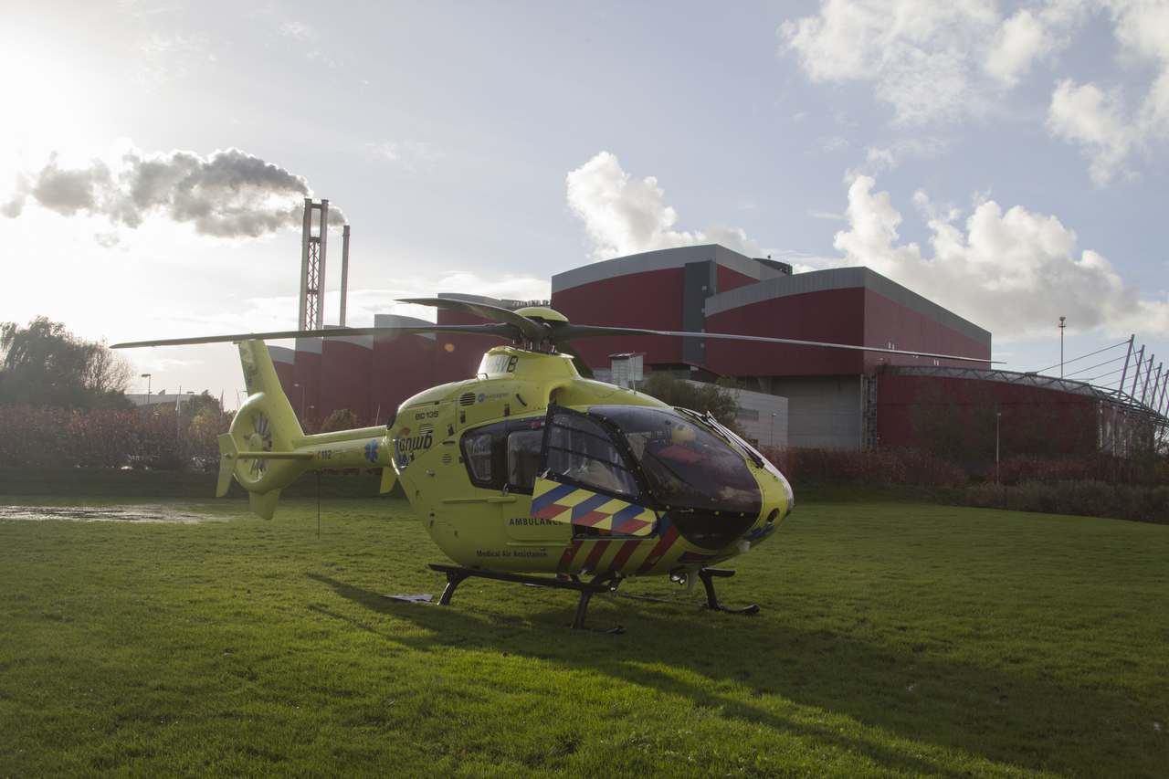 Alkmaar, 6 november 2012. Dinsdagochtend moesten hulpdiensten uitrukken naar het terrein van de HVC, de huisvuilcentrale. Eén van de medewerkers was bij de ontslakkingsinstallatie van zo'n tweeënhalve meter hoogte op de betonnen vloer gevallen waarbij zijn hoofd hard in aanraking kwam met de vloer. Het ongeval was ernstig genoeg om de vanuit Amsterdam een trauma-arts per helikopter naar de plats des onheils te leten komen. De heli zou in eerste istanitie op het terrein van de HVC landen, maar de piloot besloot op het laatste moment toch gebruik te maken van het grasveld aan de voorzijde van de centrale. Een politieauto bracht de arts daarna naar het ongeval. Het slachtoffer is met onbekend letsel en onder begeleiding van de trauma-arts naar het Medisch Centrum Alkmaar overgebracht.